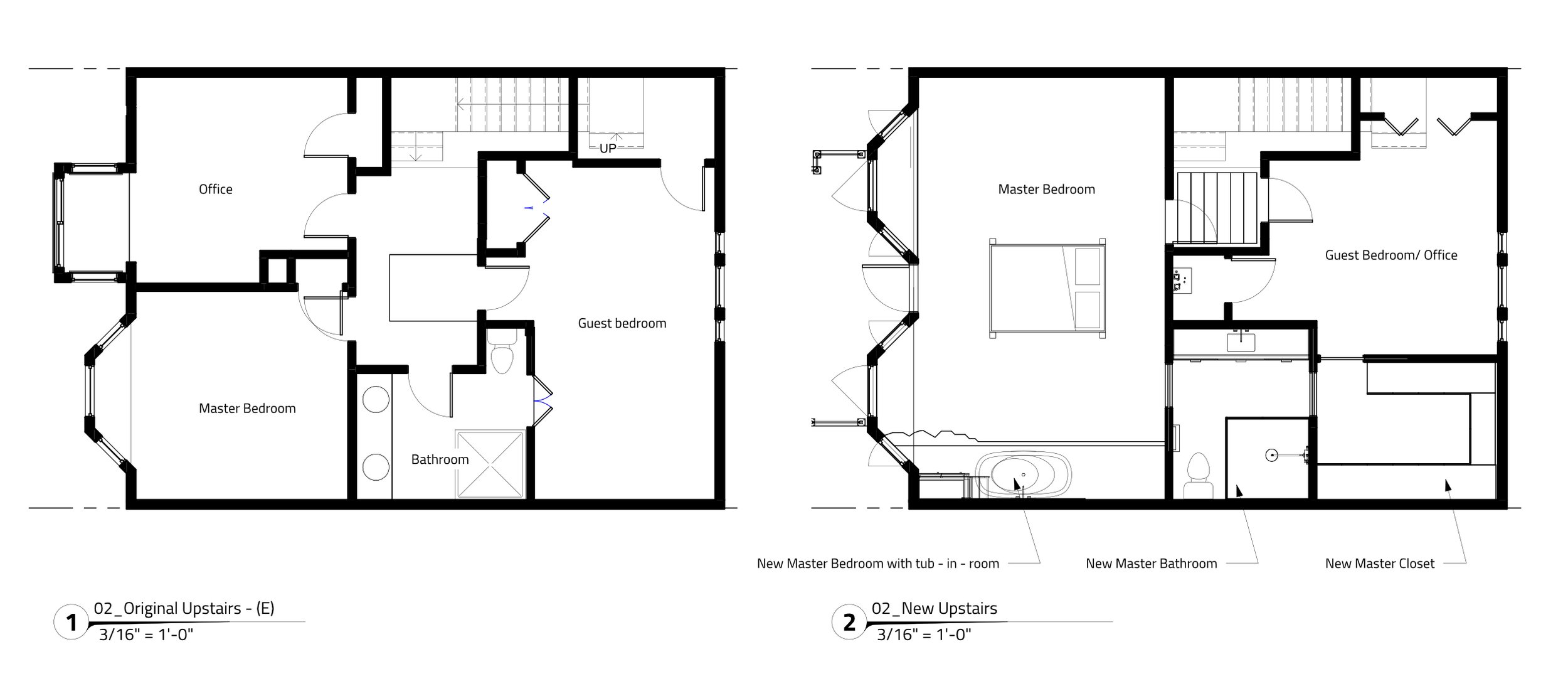 Taking into consideration (always) the period of the house and matching the design decisions to what works within the house aesthetic - we kept the majority of the house details in tact while creating a large open master bedroom with a vaulted ceiling, capturing the with a breathtaking view from the now master bedroom.