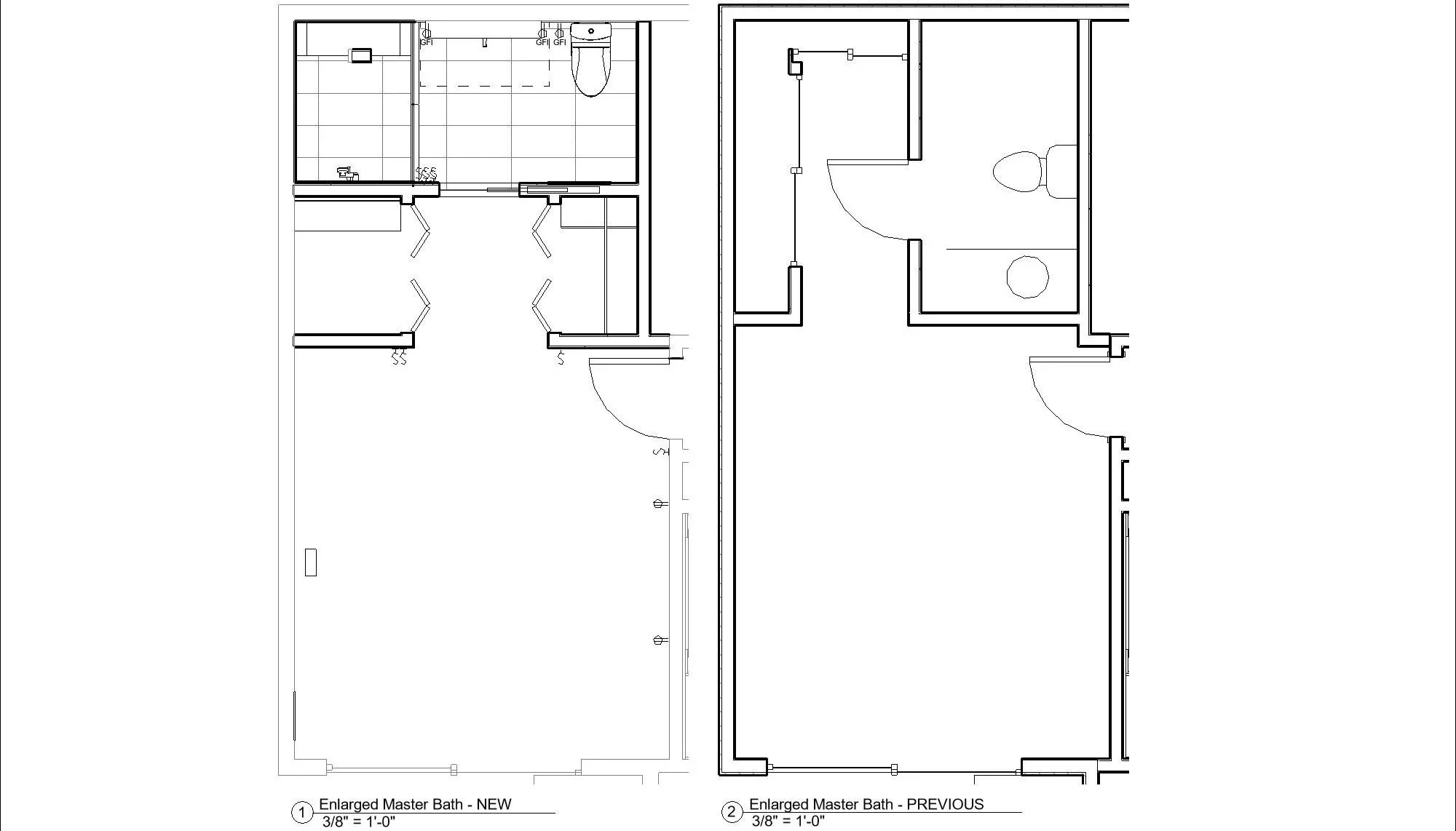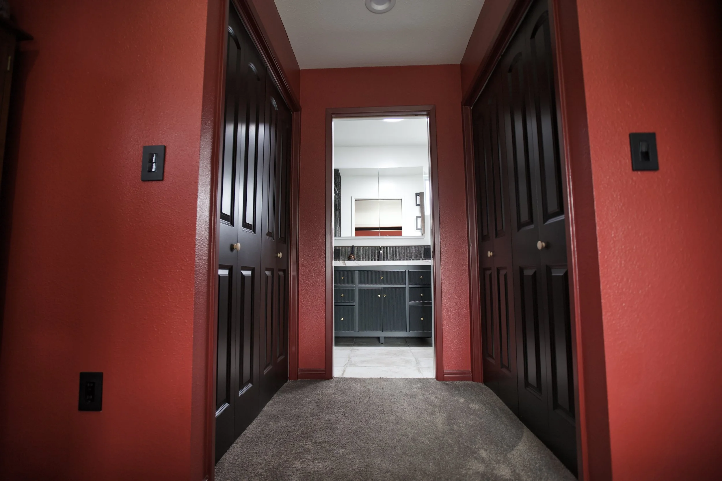 The before and after floor plan studies below show the wall relocation and the creation of the dual-closet hallway. This simple redesign is a huge change in functional efficiency and usable comfort of the space.